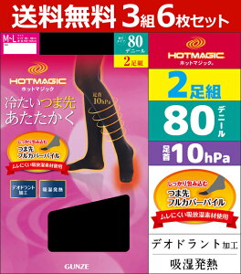 3組セット 計6枚 HOTMAGIC ホットマジック 80デニール着圧ゾッキタイツ 2足入 グンゼ 温感 ヒートテック送料無料3組セット 計6枚 HOTMAGIC ホットマジック 80デニール着圧ゾッキタイツ 2足入 吸湿発熱素材 あったか 防寒インナー 温感 ヒートテック | ヒートインナー 暖かい レディースタイツ 80デニール レディス 女性 ブラック 黒タイツ 着圧タイツ同色同サイズのセット販売となります。