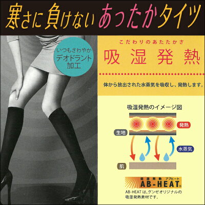 進化した暖かさ!グンゼオリジナルの吸湿発熱素材「AB-HEAT(アブヒート)」のひざ下丈タイツ。